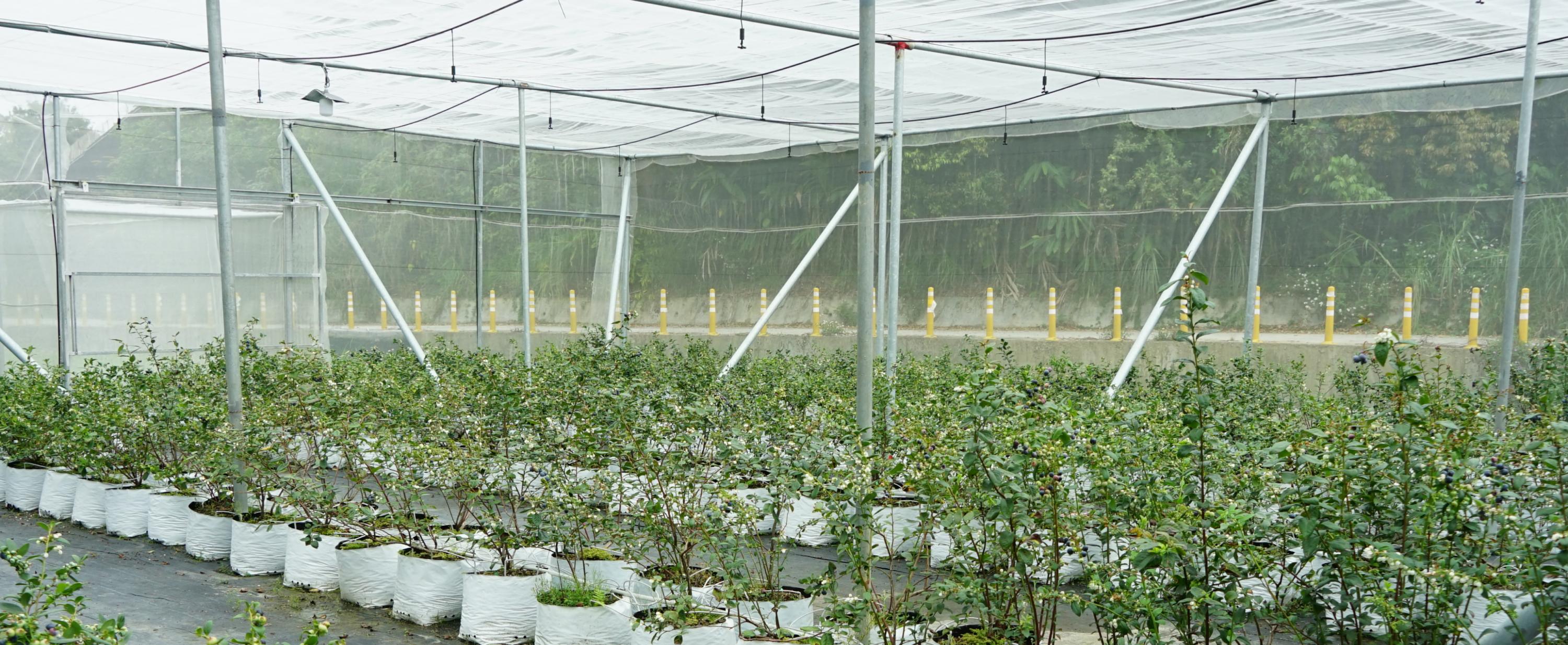 台灣藍莓多數種植在網室或者溫室裡面,